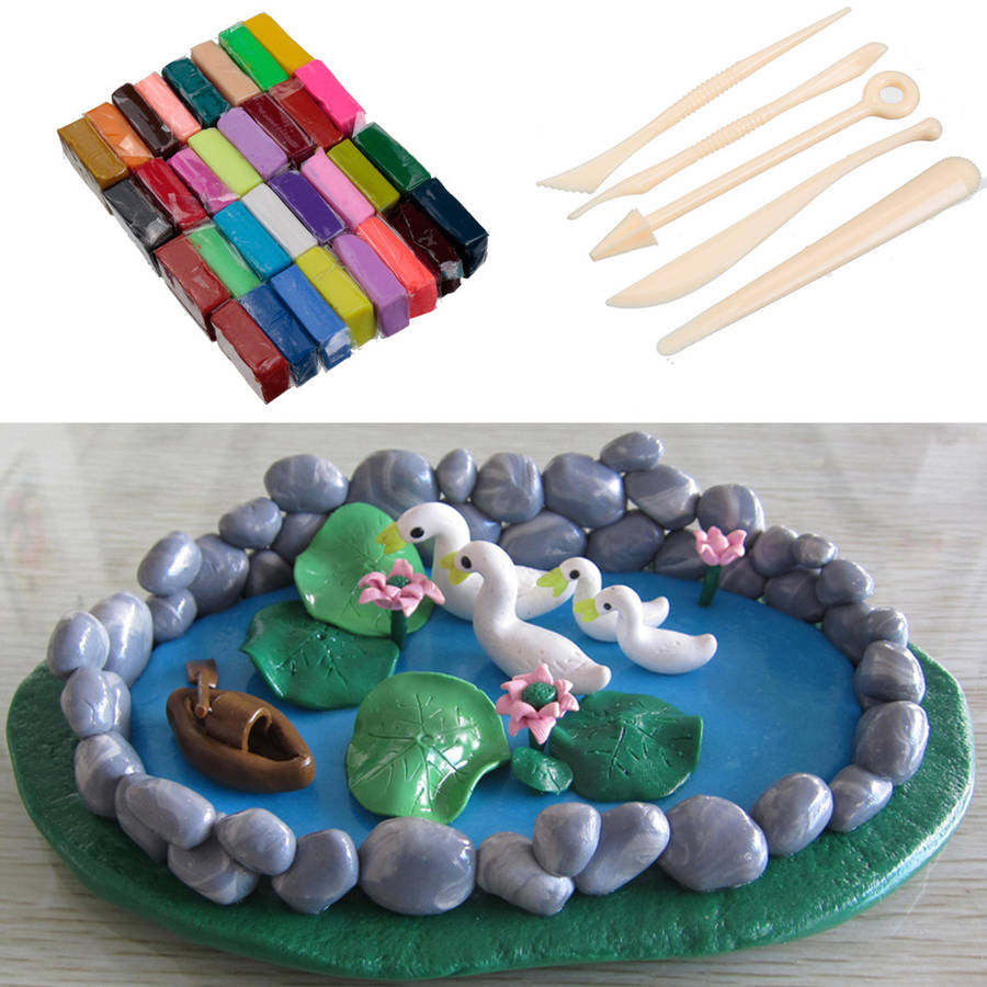 32 Colors Polymer Clay Fimo Block Modelling Moulding Sculpey DIY Toys 5 Tools