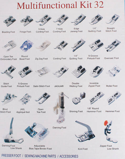 C | Stitch Guide Foot | 5 Grooves Pintuck Foot | Satin Stitch Foot | Zig Zag Foot, JAGUAR | Double Welting Foot | Invisible Zipper Foot | Roller Foot |