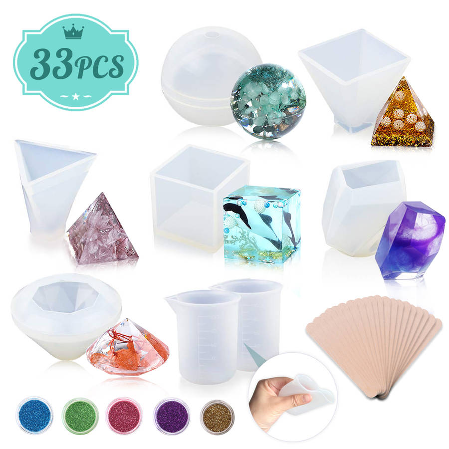 33Pcs/Set Resin Mould Resin Silicone Casting Molds Epoxy w/ 2 Pack Measuring Cu 33Pcs/Set Resin Mould Resin Silicone Casting Molds Epoxy w/ 2 Pack Measuring Cu