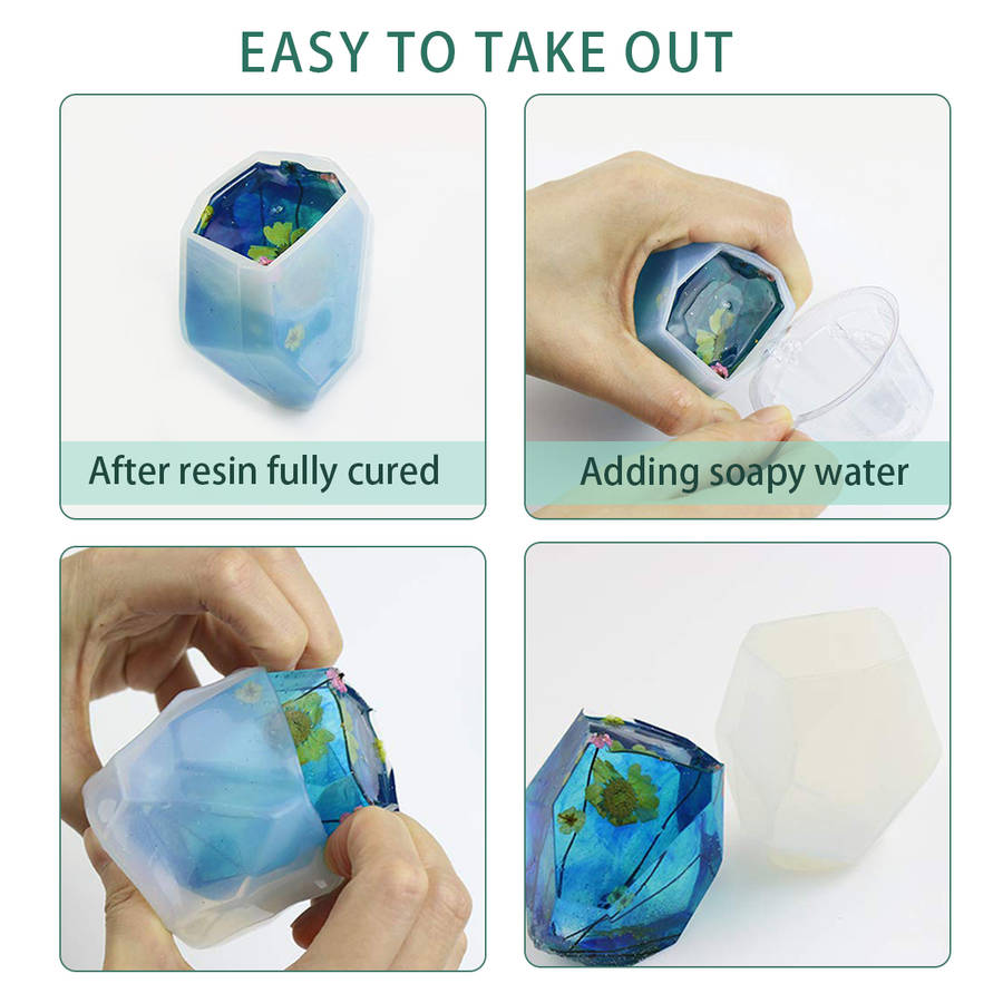 2. Easy to De-mold: Silicone casting molds are with smooth and shiny interiors, reducing the need to cut back and polish finished resin items. After your project is fully cured it will be easy out of your silicone casting mold, or you could use resin mold spray, which may help you extend your silicone casting mold's life.