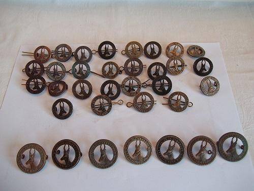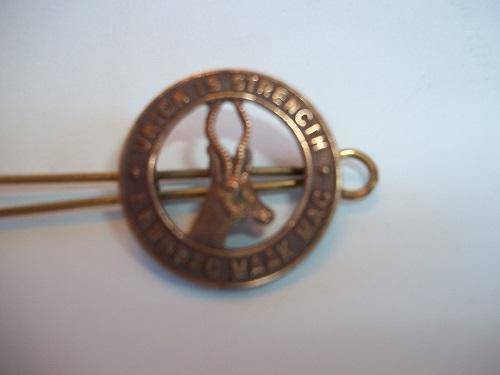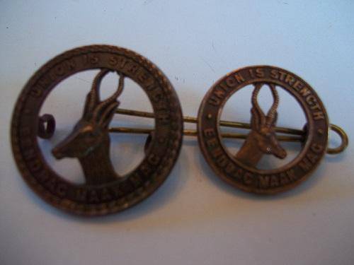 34 vintage South African Military Cap & Collar Badges- Union Is Strength/ Eendrag Maak Mag. The lot consists of:
