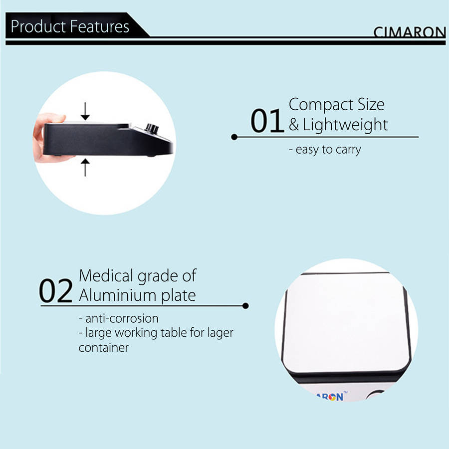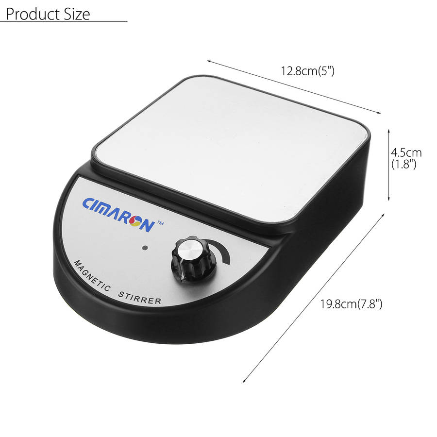 Package weight: 0.59 kg Specification: Working Table Material: Aluminium Plate Shell Material: Plastic Color: Black Size: 19.8x12.8x4.5cm / 7.8"x5"x1.8" Input: AC 100-240V, 60/50Hz Output: DC 12V 1A Adapter Plug: US Plug Motor power: 0.86W Max Mixing Capacity: 3500mL(using water as stirred liquid) Mixing Speed: 0~3500r/min Features: - Easy to carry. - Can be powered by power bank. - Can be applied for cosmetics, wine, food, etc. Package Included: 1 x Laboratory Magnetic Stirrer 1 x Magnetic Stir bar 1 x Manual 1 x Power Adapter (The beaker is NOT INCLUDED.) More Details: