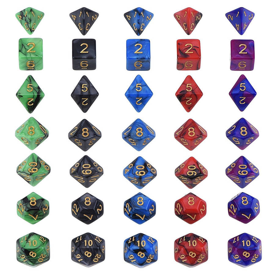 35Pcs Polyhedral Dice Set Multisided Dices Swirl RPG Role Playing Games Gadget W/ bag