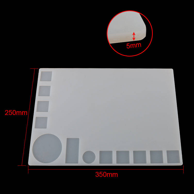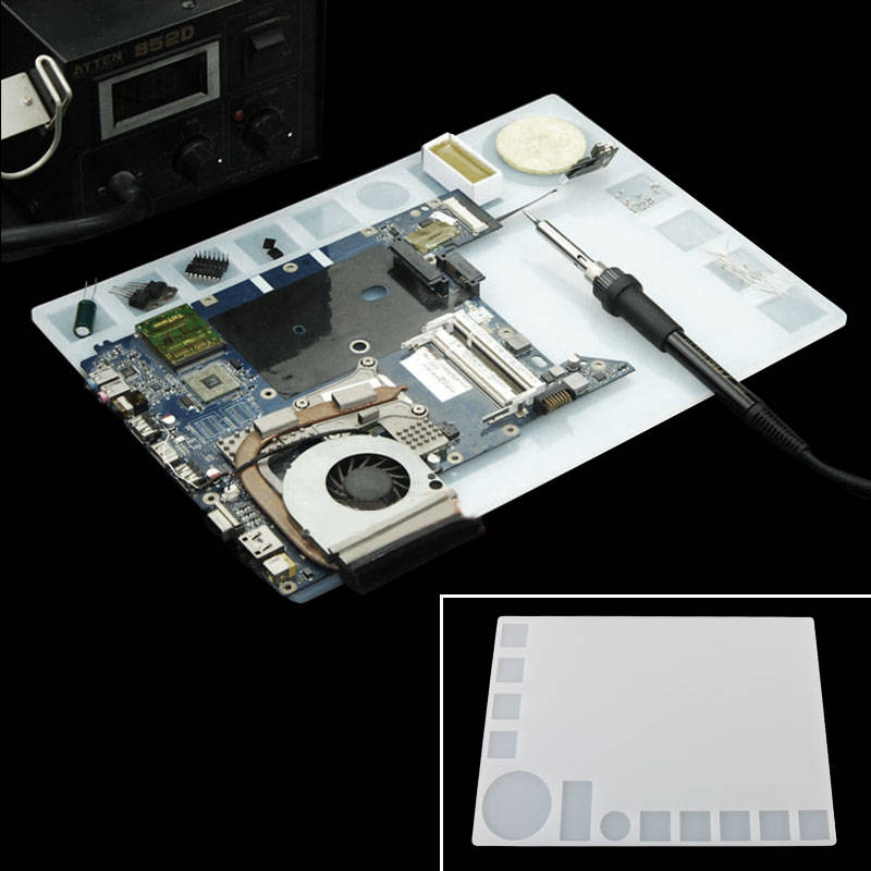 Features: Brand new and high quality heat insulation pad Resistance to high temperature of 500 ᆪC Sevaral hole location to set screws,IC chips and small parts Make your repair work easy A good partner for hot air gun Used to repair mobile phone,tablet,computer... Specification: Type:Heat Insulation Pad Usage:Maintenance Platform Net weight: 470 g Size: 35 x 25 x 5 mm Material: Environmentally friendly organosilicone Package includes: 1 x 35x25cm Heat Insulation pad Details pictures: