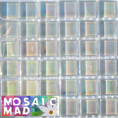 36 Crystal Glass Mosaic Tiles: MAGIC REFLECTIVE WHITE PEARL 15mm x 15mm x 4mm
