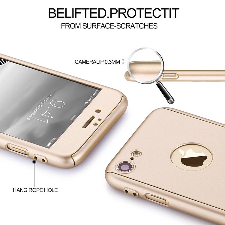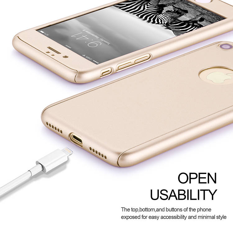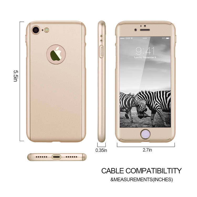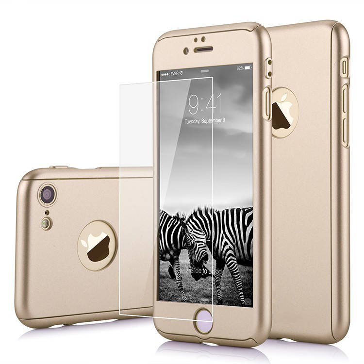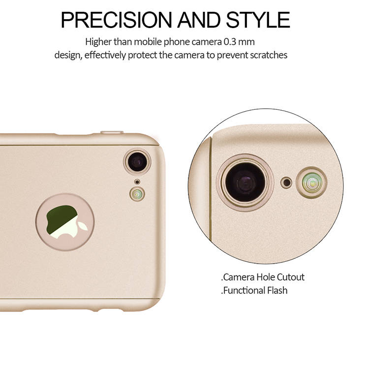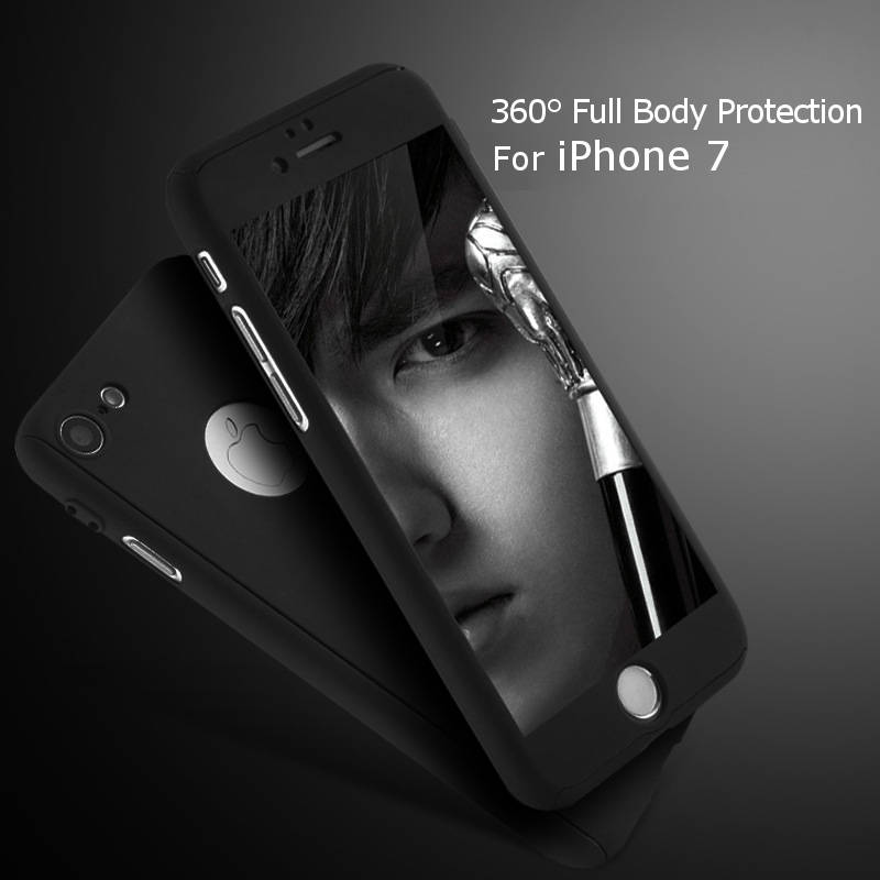 360 Degree Full Body Protection Frosted Case Cover With Tempered Glass For Apple iPhone 7