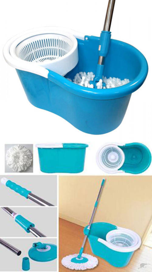 Tired of struggling to clean places under furniture, between furniture and walls, or up on the ceiling? With the Spin Mop, you'll never have to bend your back while mopping the floor! This design is based on the physical principle to save energy. All you have to do is give it a couple of dunks in the bucket, place it in the basket and push down on the handle for easy straining. The special head creates a powerful gravity defying suction that literally inhales the mess off the floor and into the mop and it's machine washable so you can use it over and over again. It's great for any type of floor!