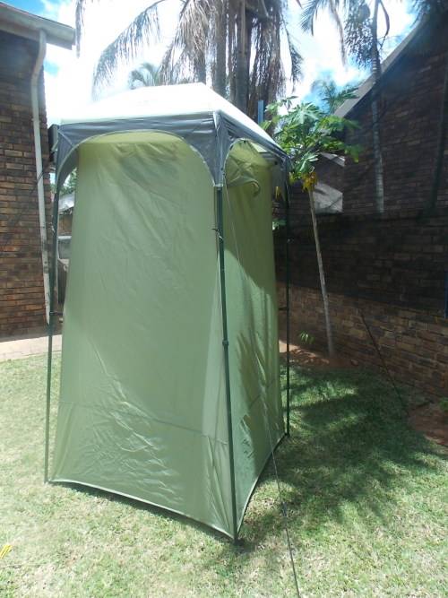 On offer is this 360 Degree Camping Toiler/Shower. It comes a solar heating water bag with shower nozzle made of heavy duty plastic and holds 20 liters of water. Included is a toiletry compartment for soap, shampoo and shower gel. It is in excellent condition and has hardly been used.The toilet/shower comes in a carry bag and weighs about 4-5 kg.