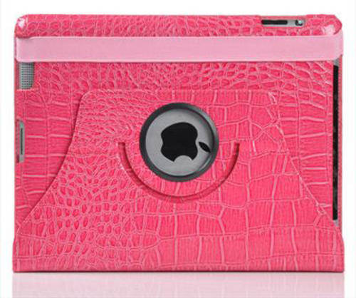 Pink Crocodile Polyurethane Leather Smart Case with 360 degrees rotating swivel for Apple iPad 2 (iPad 2 is not included)