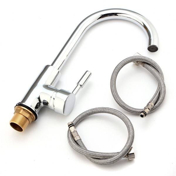 This is a 360ᆪ rotation chrome plated, which is perfect for kitchen sink basin faucet. Hot and cold water indicator, it is convenient for kitchen using. Ceramic disc cartridge for smooth and long lasting operation. High Quality diffuser for water softening and filtration. Complete with hot & cold water hoses & accessories. Specification : Thread : Approx.31mm Base Diameter : 48mm Height : Approx.310mm Lever Style : Single lever Minimum Bar Pressure : 1.0 Bar Maximum Bar Pressure : 5.0 Bar Spout Style : Swivel spout for single and multiple bowl sinks Package Included : 1 x Kitchen Sink Basin Mixer Tap 2 x Kitchen Faucet Flexible hoses 1 x Fitting kit Detail Pictures :