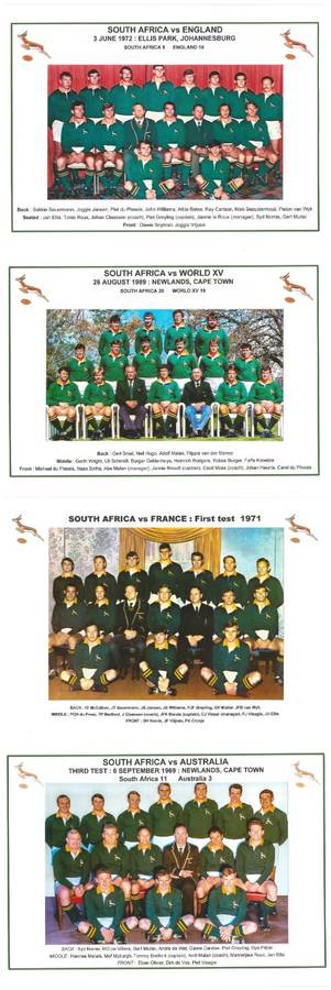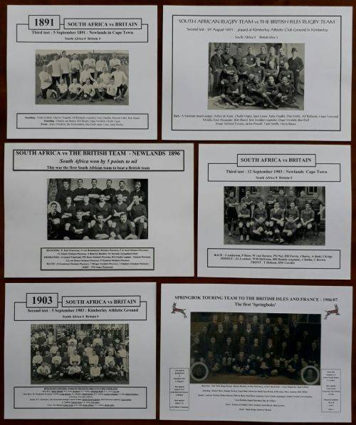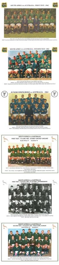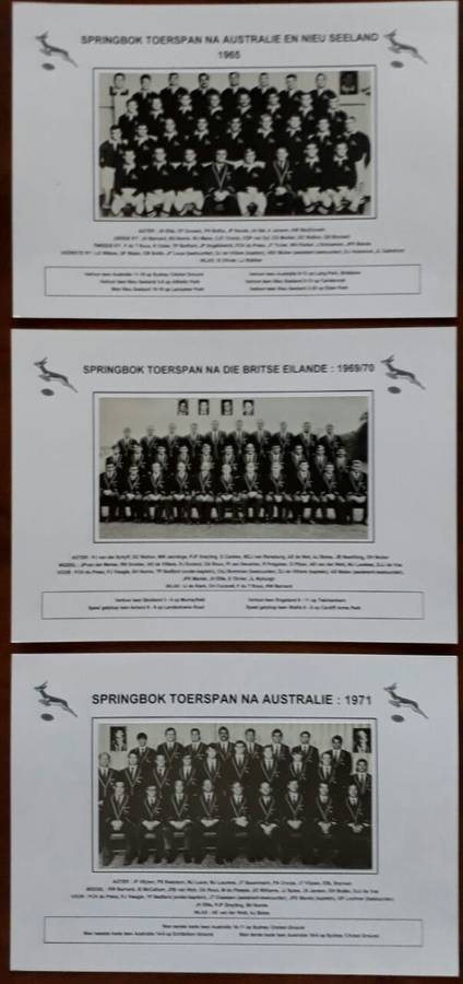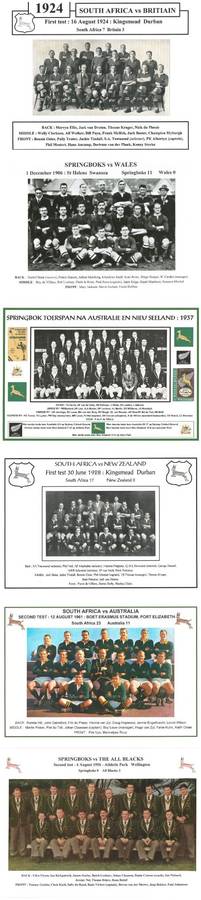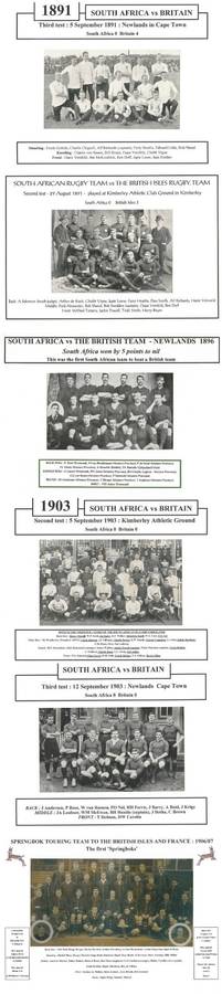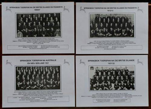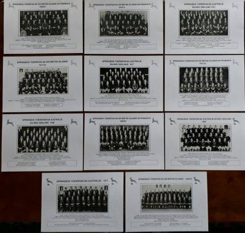 Below : Eleven pictures of Springbok touring teams : 1906/07, 1912/13, 1921, 1931/32, 1937, 1951/52, 1956, 1960/61, 1965, 1969/79, 1971