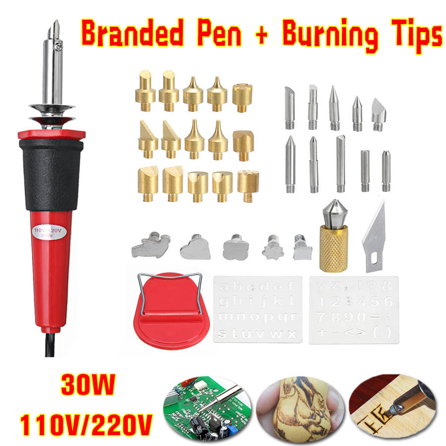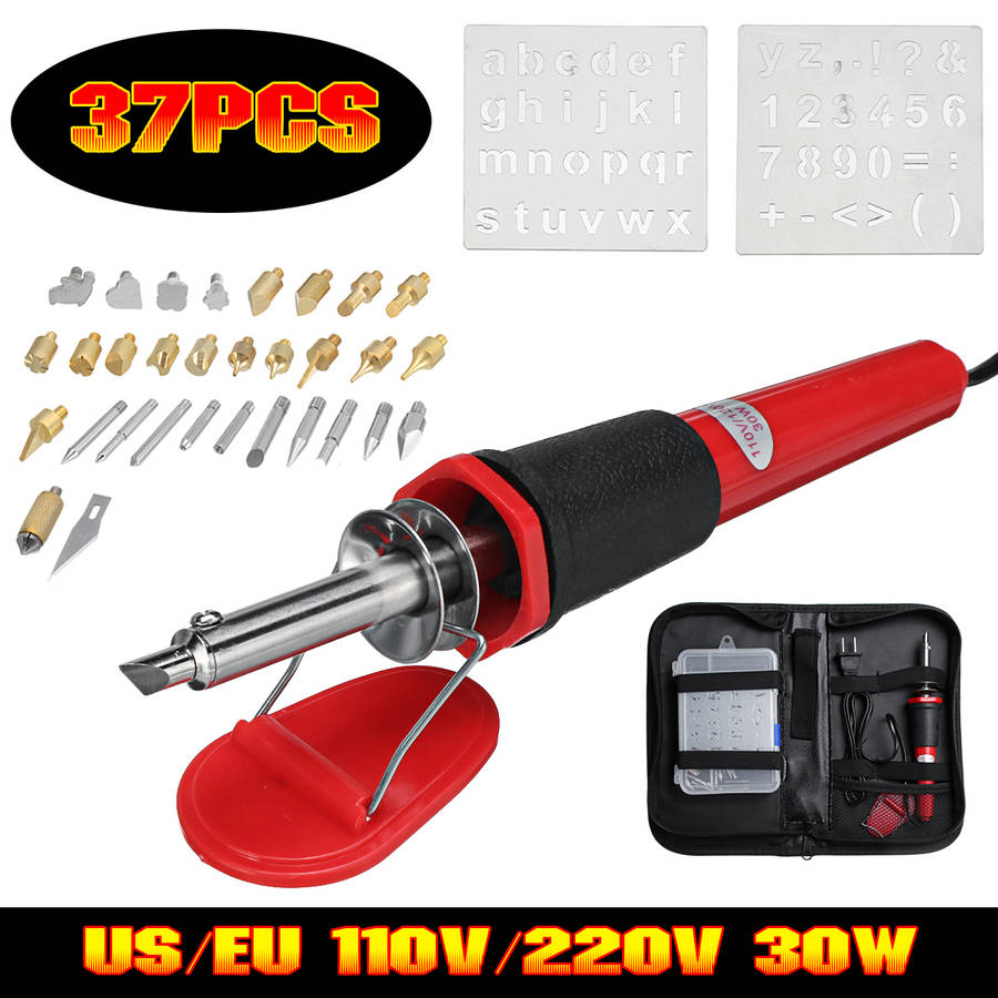 Features: - Wood Carving, Wood Embossing, Wood Burning and Soldering Tips. - Insulation silicone cover makes the pen more durable and comfortable. - Great for Woodworking, Soldering, Metal Work, Hobby, Craft, Home, etc. - Multifunction, combine there functions of soldering,wood burning and leather burning, the Welding Iron is Small and compact, lightweight pen style . - 37PCS wood burning kit with 33 Soldering tools, 2 Number and letter stencils and stand, can be used to burn drawings, lettering and creating decorative patterns on wood, leather and cork etc. - Ergonomic design, light weight and the ergonomic designed handle to help you operate it in different angles no tired. The included holder can support the heating & heated burning pen safely during working. - The marking set is great for arts and crafts, cabinet and furniture making, electronics and electrical device repair, wood work and leather work, foam and plastic cutting, sign making and more. - Easy to use and very safe, perfect choice for wood burning beginners, professional users and hobby enthusiasts.Suitable On Cork, Leather, Some Papers, Even Wax Candles, Woods Such As Beech, Sycamore, Birch Or Hornbeam.