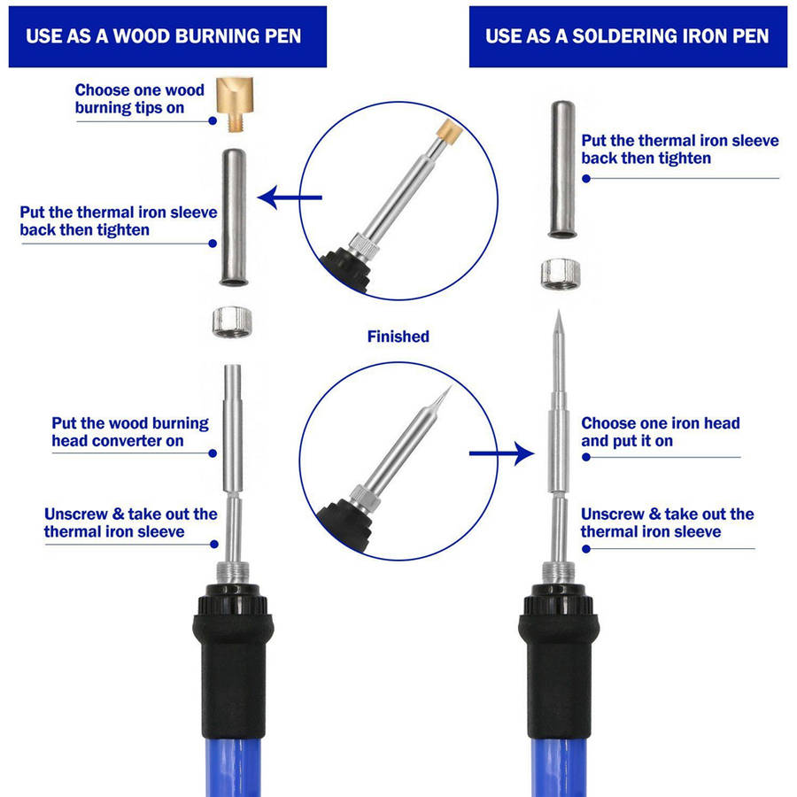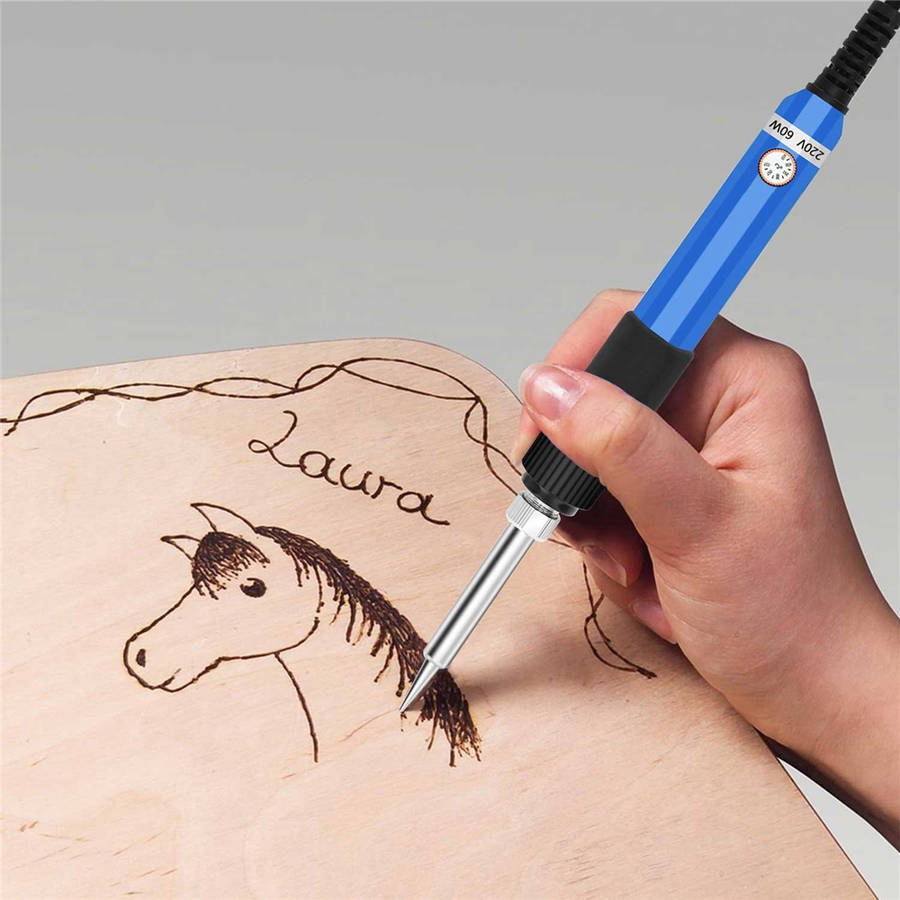 Quick Heating - Premium quality 60W quick heating wood burning kit with 28 assorted soldering tips and accessories can be used easily for all skill levels including wood burning beginner, experiencer, expert. Antioxidant tip, Insulated handle, Insulation shield, Power protection case. The sponge need to use with water. The optimum condition of a sponge is that pinch sponge without water but wetness. The function of sponge is to collect tin slag. When the iron head is oxidized to black, use emery to clean it firstly, then turn on power for heating, then put on tin immediately. This method can clean the oxide.
