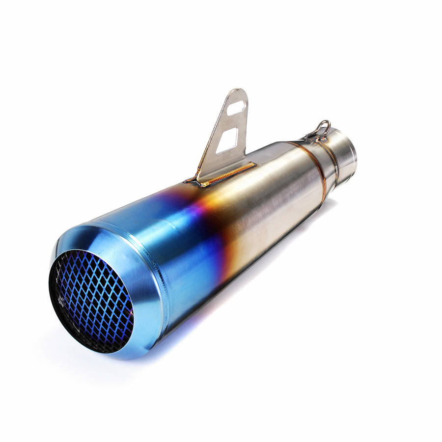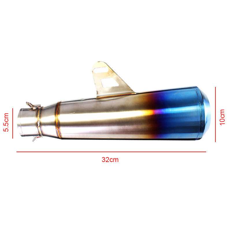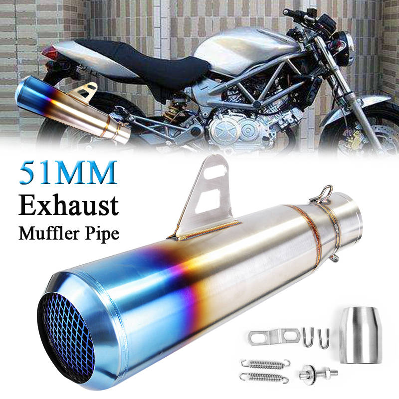 Description: 1. With added coating process, high temperature resistant and anti-corrosion, superior longevity. 2. Makes your motorcycle roar with outstanding sound and helps to obtain maximum output, ensuring its top performance. 3. Along with removal DB killer, which is good for small output volume motorcycle, and removable allows for large displacement motorcycle exhaust smother. 4. Fashionable and stylish, an add-on decoration to dress up your motorcycle. 5. Fit for most motorcycles, ATV and scooters with exhaust pipes in diameter of 38mm-51mm, such as fit for Kawasaki, for Honda, for Yamaha, etc. Specification: Length: 320 mm Diameter: 51 mm Material: Stainless Steel Color: Half-blue Package Included: 1 X Exhaust Muffler Pipe 1 X Accessories Kit