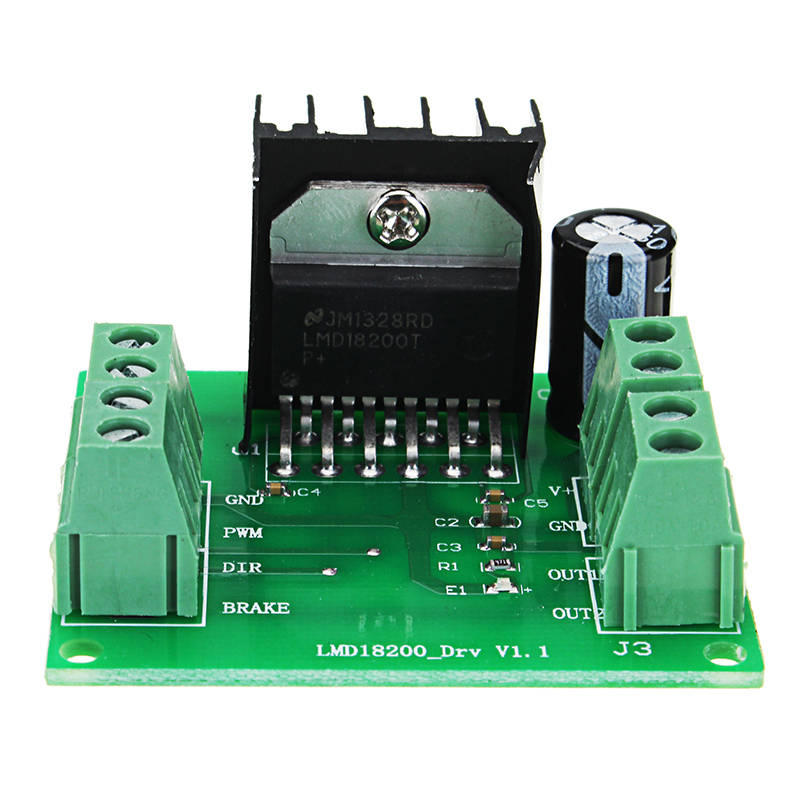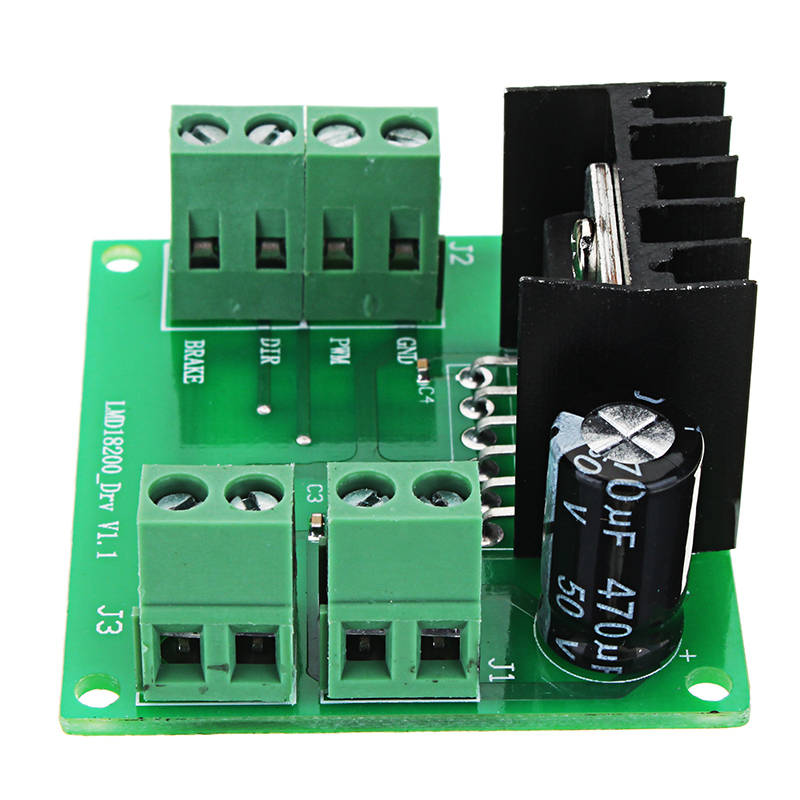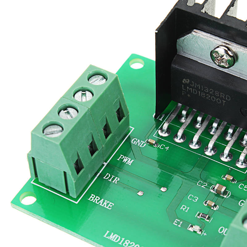 Feature: LMD18200T DC Motor Driver Module is an H-bridge driver component dedicated to the DC motor. Integrated CMOS control circuitry, and DMOS power device on the same chip, the use of which may constitute a complete motion control system with the main processor, motors and incremental encoders. LMD18200 widely used in printers, robots With power indicator, and speed is adjustable. Anti-jamming with a continuous flow protection. LMD18200T DC Motor Driver Module is an H-bridge driver component dedicated to the DC motor. Integrated CMOS control circuitry, and DMOS power device on the same chip, the use of which may constitute a complete motion control system with the main processor, motors and incremental encoders. LMD18200 widely used in printers, robots With power indicator, and speed is adjustable. Anti-jamming with a continuous flow protection. Can individually control a DC motor. PWM can help to achieve smooth speed regulation. Can achieve turning and reversing. Specification: Material: CCL Main chip: LMD18200 Working voltage: Control signal DC 4.5-5.5V; drive motor voltage: 10-30V Maximum output current: 3A (instantaneous peak current 6A) Maximum output power: 75W Package includes: 1 x PWM Speed Adjusting Motor Driver Module