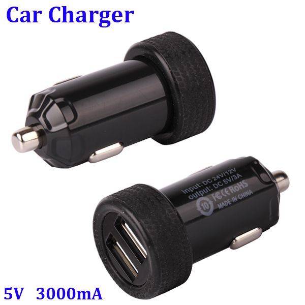Mini 3Amp USB Car Charger Adapter for Apple/Blackberry/Samsung/Kindle (Black)