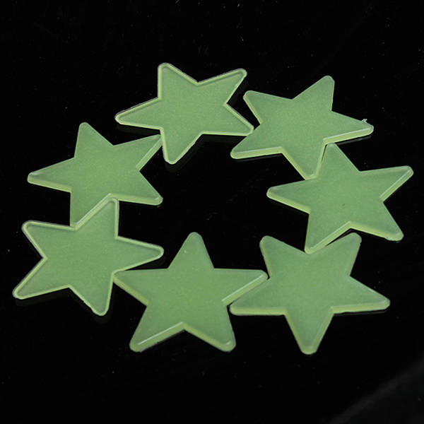 Description: This Photoluminescent Pigment is environmentally friendly. great decoration for bedrooms, nursery rooms, kid's room, etc. How it works? It adsorbs light and glows in the dark. So you must put it in the sun to absorb much light. Or you can also turn on the lights to let it absorb enough lamplight. When you turn off the light and go to bed, it will glow in the dark. Features & details: Shape: Flaky pentagram Material: Plastic Color: Light Green Size: 3cm Weight: 100G Package Included: 100Pcs x Stars Stickers
