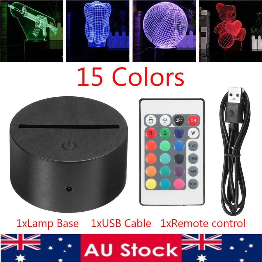3D Acrylic Night Light 7 Color LED Lamp Base Panels DIY Remote Control USB
