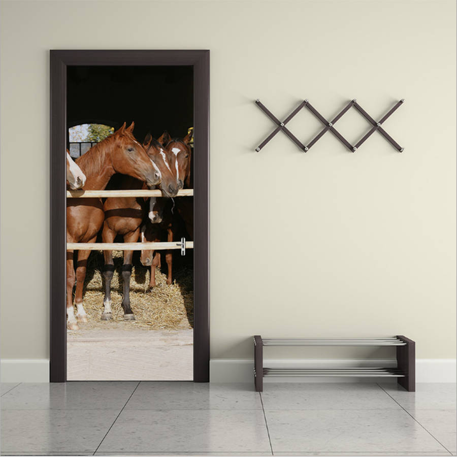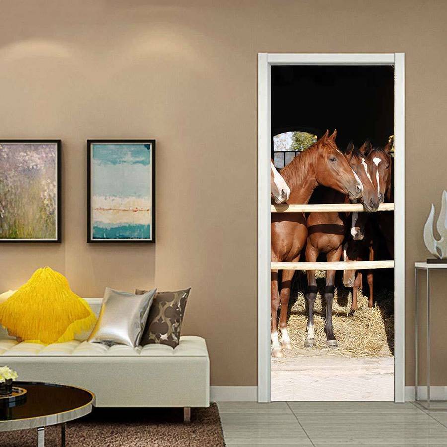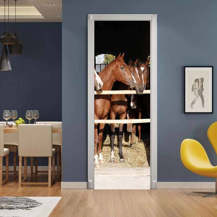 3D Creative Horse Door Wall Sticker Decals Self Adhesive Mural Home Art Decor