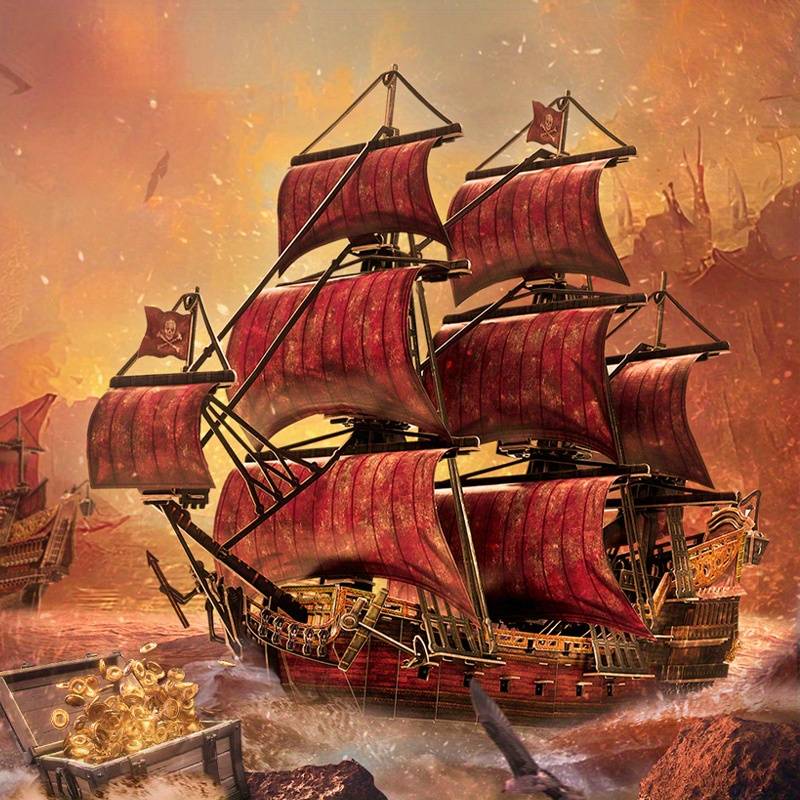 3D Puzzle Large Ship Model Laser Red Anne of Scotsland Revolt - Home Decor, Educ Material:Cardboard Applicable Age Group:10 Years+ Color:Mixed Color