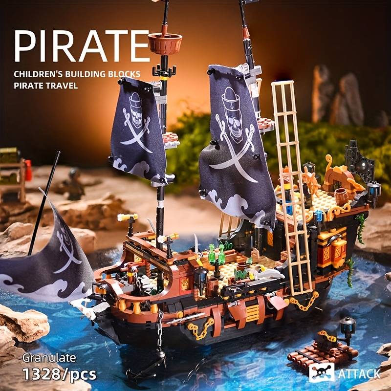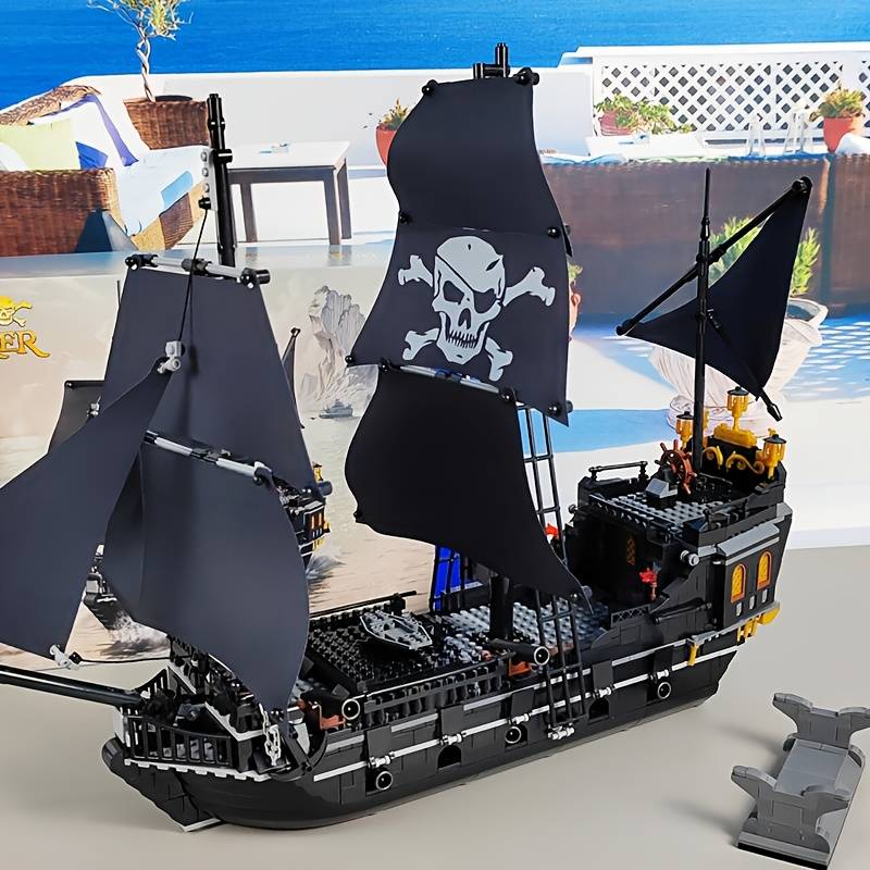 1424pcs Black Magician Pirate Ship Building Blocks, Pacific Age of Sail Pirate S Main Material:ABS Theme:Transportation Applicable Age Group:14 Years+ Color:Mixed Color