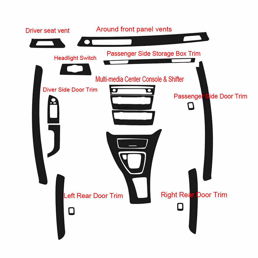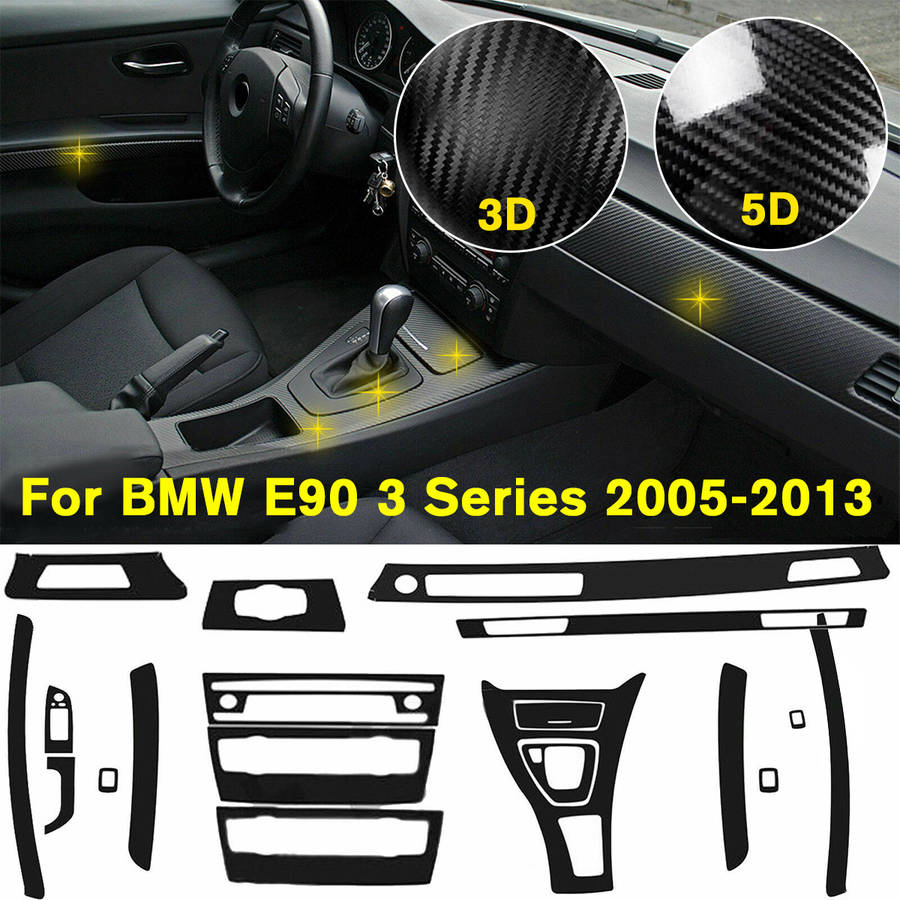 Description: Type: One Set Of Interior Decor Decal Fitment: For BMW E90 3 Series 2005-2013 Material: Vinyl Color: 3D Matte Black Carbon Fiber pattern, 5D Glossy Black Carbon Fiber pattern(Pls choose one you like) Features: - This item is made by premium quality carbon fiber texture vinyl. It will give your Car interior an upgrade and luxury looks. - Ultra long lifetime, no fade or run even at extreme weather condition. - Easy to install and remove. Installation: 1. Get a hair drier ready. Make sure target surface is clean and dry before applying the vinyl 2. Peel off backing and press vinyl slowly and firmly on the target area 3. Use the squeegee in the package to squeeze any air bubble towards the edge 4. If there is wrinkle, heat up the vinyl with hair drier and smooth the surface with the squeegee 5. Tuck extra vinyl into seam (or cut it) Package Included: One set of interior decor decal (Driver seat vent, Headlight switch, Around front panel vent, Passenger side storage box trim, driver side door trim, multi-media console/shifter, passenger side door trim, left/right rear door trim)
