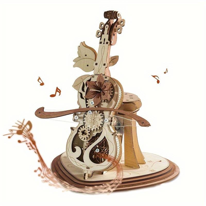 DIY 3D Wooden Cello Music Box Model Kit - Mechanical Hand Crank Musical Craft Se Main Material:Wood Applicable Age Group:14+ Color:Mixed Color Item ID:BQ147325