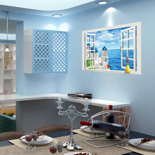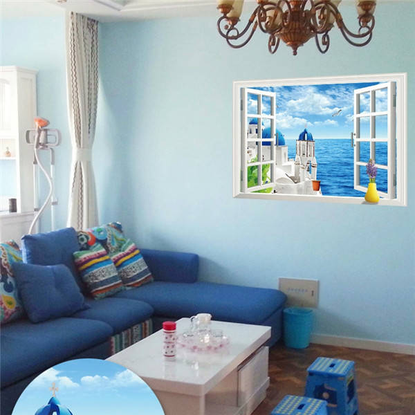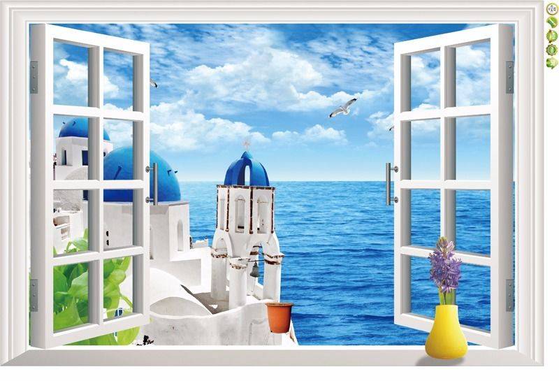 3D Window View Aegean Sea Removable Wall Sticker Art Decal Mural Home Decor