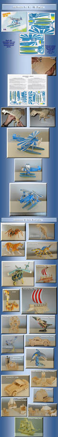 Each puzzle is individually shrink-wrapped and made of 3mm high grade plywood. The units come with a picture of the final assembled product along with a numbered chart to help you along if you get stuck. Everything is pre-cut, simply pop out and slot the pieces together at the points where the same number appears to form a 3D model!