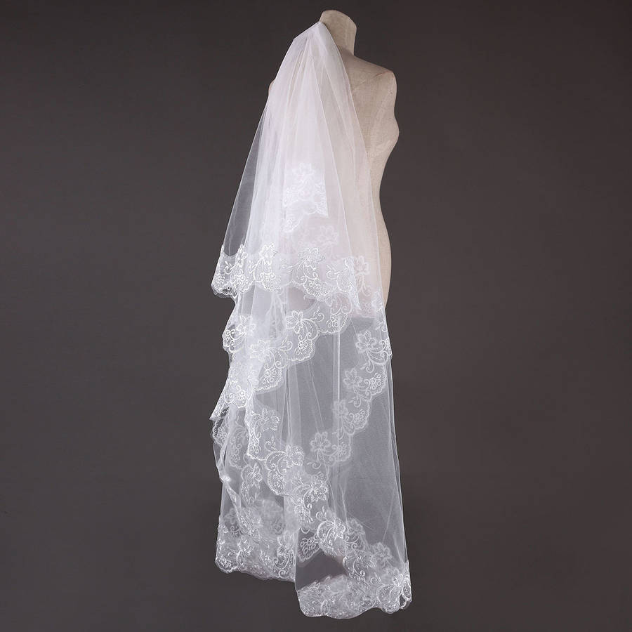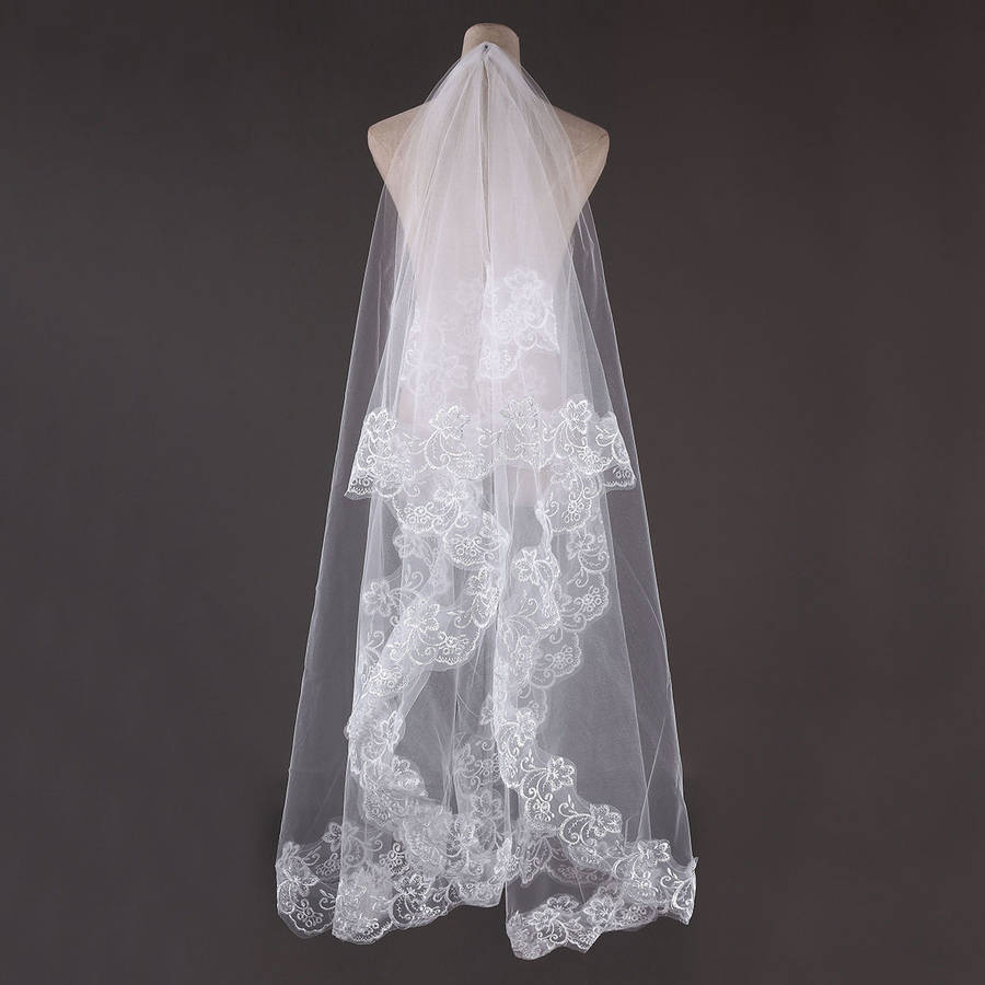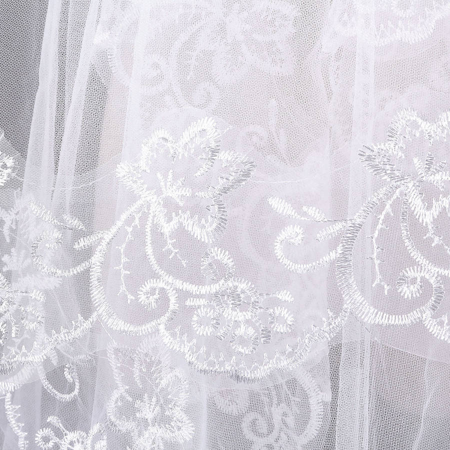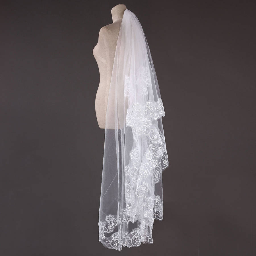 Package weight: 0.11 kg Features: 1. Lace embroidery make the veil more elegant and beautiful. 2. Perfect decoration for wedding party. 3.It can be used wedding party,T show,or the photogrphy. 4. Beautiful lace edge veil will make Bride more beautiful. 5. Good wedding gift for your lover,family,friend and coworkers Description: Veil Material: Nylon+Lace Edge Layer: 1 Layers Color:White,Ivory,Red Occassion:Wedding,Photography,T Show Weight:112g Detail In Size: Length: Approx. 3m / 118.11'' Width: Approx. 2.24m / 88.19'' Package Included:1 x 1 Layer White/ Ivory/Red Bridal Veil with comb More Detail: Red Ivory White Disclaimer : About Size:Size may be 2cm/1 inch inaccuracy due to hand measure.These measurements are meant as a guide to help you select the correct size. Please take your own measurements and choose your size accordingly.we cannot accept responsibility for incorrect purchases. About Color:The precise color of the items may vary depending on the specific monitor,the settings and the lighting conditions.The items colors depicted should only be used as an approximate guide .