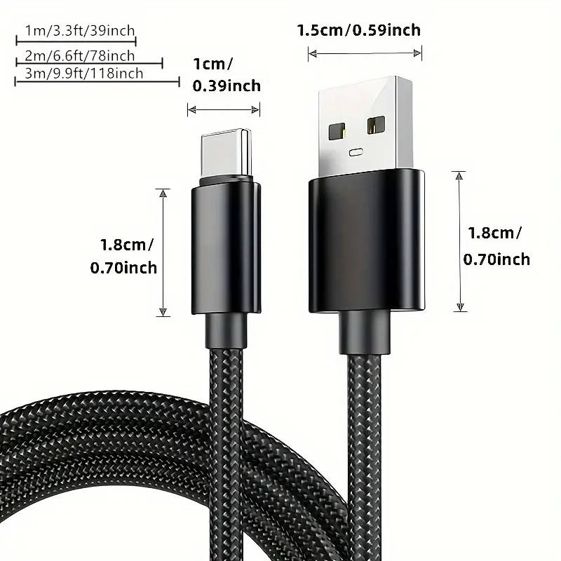 3m High-speed Type-C Charging Cable Fast Charging, Braided Design, 10-20W Power Delivery, Data Transmission, Matte Finish, Copper-Aluminum Core, Charging Cable for Phone, Sleek Cable Design, Durable Cable Construction Brand New