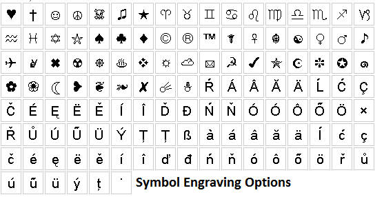 LASER ENGRAVE YOUR NAME, A MESSAGE OR ANY OF THESE FOLLOWING SYMBOLS.