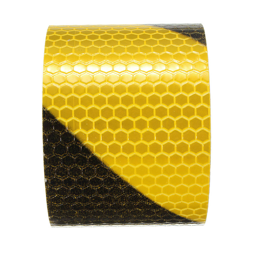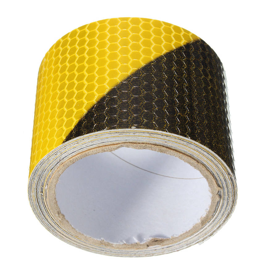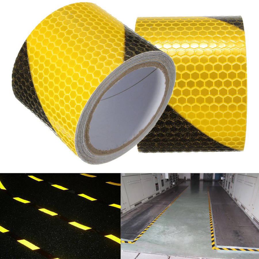 Specifications: Name: Reflective Safety Warning tape Material: Reflective tape, can be pasted on the ground or object surface Width: 5CM / 2 Length: 3 Meters /10' Color: Black with Yellow Quantity: 1pc