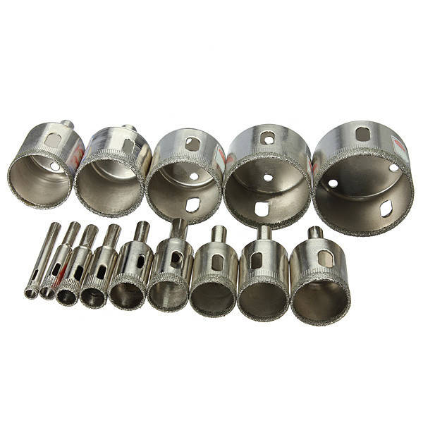 ship to European countries in 7-10 days in UK warehouseDescription :3mm-125mm Diamond Holesaw Tile Ceramic Glass Porcelain Tool Drill BitsDiamond dust hole saws are suitable for drilling ceramic tiles, glass, marble, slate and porcelain tiles up to hardness grade