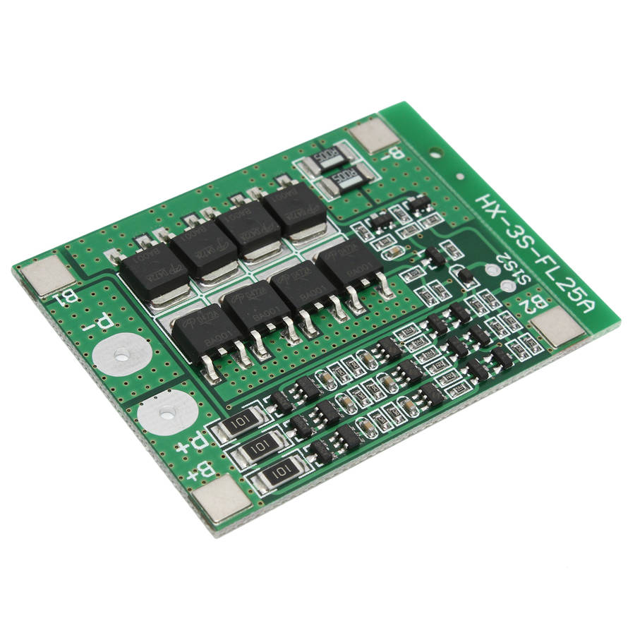 Package weight: 0.10 kg Description: Model: HX-3S-FL25A-A Size: about 56mm*45mm*1.2mm Over voltage range: 4.25~4.35V ± 0.05V Over discharge voltage range: 2.3~3.0V ± 0.05V Maximum operating current: 0~25A Maximum transient current: 34~40A Quiescent current: less than 30uA Internal resistance: less than 100Mohm Working temperature: -40¬トテ ~ +50¬トテ Storage condition: -40¬トテ ~ +80¬トテ Effective life: more than30000h Short circuit protection: Yes, delayed self recovery Note: 1. Strictly according to the diagram wiring: 0V(B-)3.7V(B1)7.4V(B2)11.1V(B+),Do not deliberately short circuit. 2. After the wire is connected, needs to charge first, then have output. 3. When the battery is connected in series with 3 groups ,please ensure that the voltage of each battery is the same. If not the same, please fill in each set of batteries and then use. 4. Do not mix the good battery and the battery. 5. It will be better the capacity of the battery internal resistance is closer. Package included: 3 x Battery Protection Board