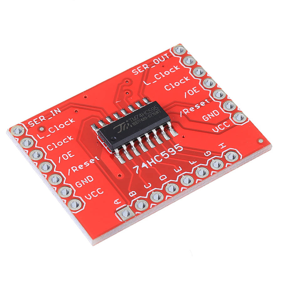 Description: This is a bre out for the SOIC version of the 74HC595 shi ft register IC. Clock in data and latch it to free up IO pins on your micro. All pins from the IC are broken to standard 0.1 spaced headers. The Serial in and out pins are on opposite sides of the board with the remaining pins carried over so that multiple shi ft register boards can be chained together. Package Included: 3 x 74HC595 Module Shi ft Register Module