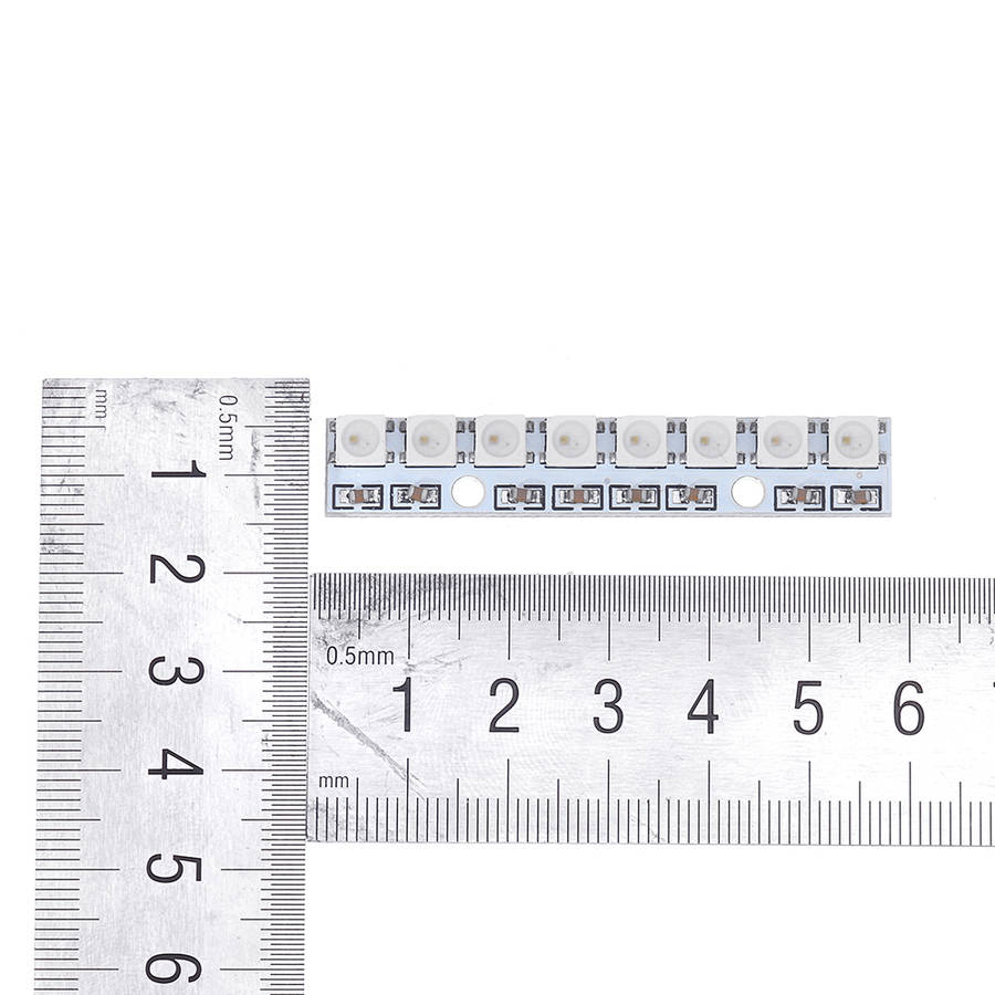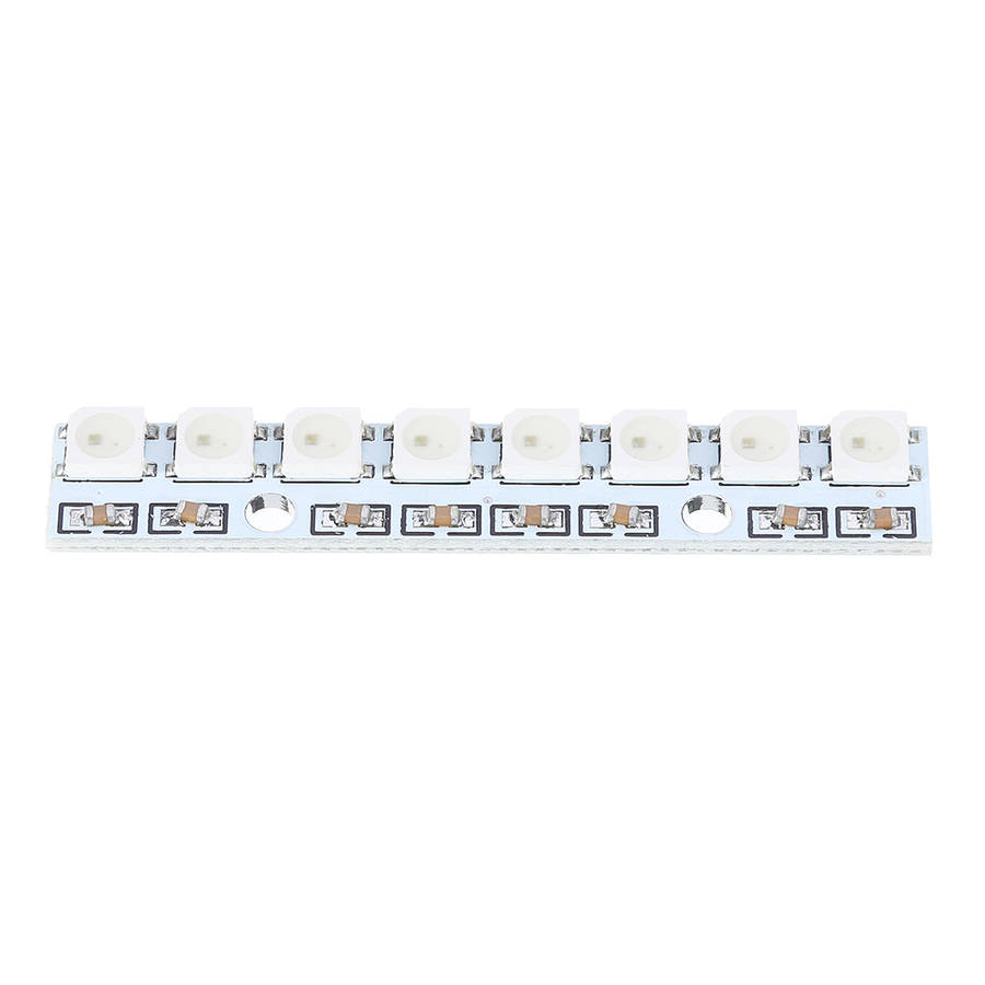 Features: Model: 8-bit 5050 full color LED module Size: 11 * 15mm Chip: WS2811 (built-in LED) LED: 5050 package RGB full-color highlight Voltage: 5V Descriptions: 5050 bright LED, a built-in control chip, only one IO port can control multiple LEDs Chip built-in shaping circuit, the signal distortion will not accumulate, stable display Three-color 256-level brightness adjustment, 16 million color true color display, scanning frequency of not less than 400Hz / S Serial-level interface, through a signal line, to complete the data reception and decoding The refresh rate of 30 frames/sec, the low-speed mode with the series of not less than 512 points Data transceiver speeds up to 800Kbps Highlight LED, light color brightness consistency Both ends have a series interface, can be directly connected Package includes: 3 x 8 bit 5050 full color LED module
