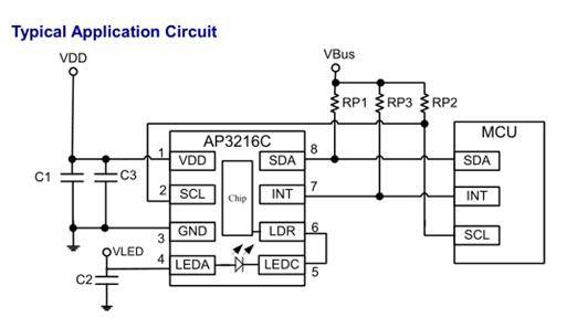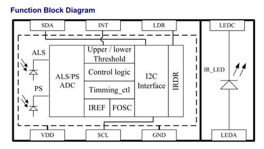 Description: The AP3216C is an integrated ALS&PS module that includes a digital ambient light sensor [ALS], a proximity sensor [PS], and a single package of infrared LEDs. The unit offers multi-gain capability with linear response in the dynamic range 365/1460/5840/23360, making it ideal for applications in clear glass or dark glass. The proximity function is specifically designed for near-field applications where external objects are detected through a simple configurable area controlled by registers. With multiple proximity gain control, Multiple infrared LED current control and 10-bit ADC output, the device is specifically designed to hold low-reflective objects such as black hair. The device supports interrupts to increase system efficiency and has features that help minimize the occurrence of false triggers. Through internal calibration and CMOS design, the AP3216C is designed to minimize device-to-device variation for ease of manufacturing. Features: I 2 C interface (fs mode 400k Hz) Mode selection: ALS, PS+IR, ALS+PS+IR, PD, ALS once, SW reset, PS+IR once, ALS+PS+IR once. Built-in temperature compensation circuit Ambient light sensor with the operating temperature range (-30ᆪC to +80ᆪC) 16-bit effective linear output (0~65535) 4 user-selectable dynamic range Anti-flicker suppression (reject 50/60Hz) High sensitivity Window loss compensation Proximity detector 10-bit effective linear output (0~1023) 4 programmable infrared LED current output High ambient light suppression Crosstalk compensation Applications: Mobile phone, PAD Personal navigation device Notebook/superbook LCD/PDP TV backlight system Digital Frame Capacitive touch screen applications
