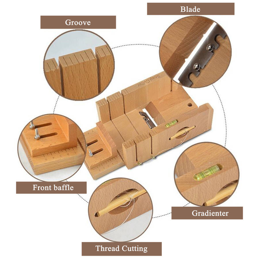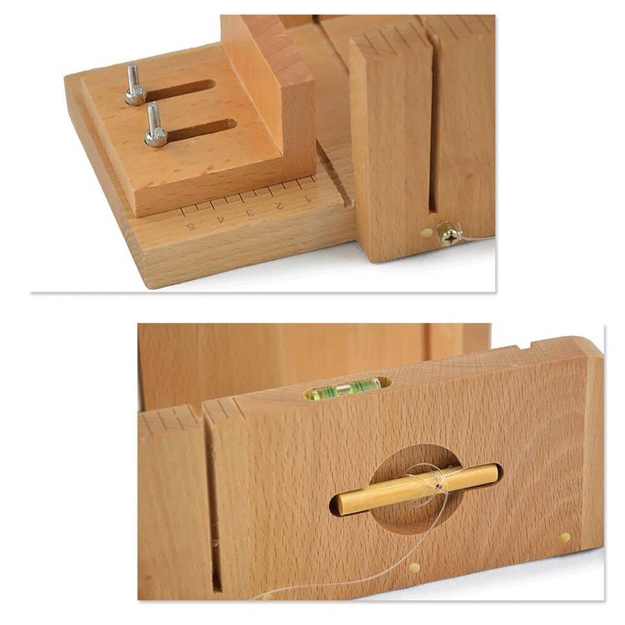 -High quality soap cutter.Be made of pine.Features:Trim soap+groove cutting+thread cutting+gradienter.
