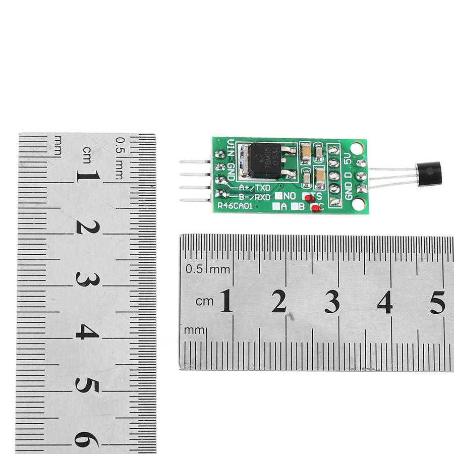 Description : - MODBUS RTU protocol,03 Read,06Write. - Serial baud rate:9600,N,8,1 - By modifying the RS485 address, up to 247 module s can be connected (more than 16 US ether485 repeater) - Working Voltage : 12V DC - Working Current: 5-7mA - Temperature sensor: DS18B20 - Measures Temperatures: -55ᆪC to +125ᆪC(-67ᆪF to +257ᆪF) - Accuracy: ±0.5ᆪC - Size: 30X15X3.5mm Typical Application: Thermostatic Controls Industrial Systems Consumer Products Thermometers Thermally Sensitive Systems Indoor and outdoor temperature measurement Temperature in vegetable garden Weather forecasting, and monitoring Temperature in Computer Room Warehouse temperature Package Included: 3 x DS18B20 5V TTL Com UART Temperature Acquisition Sensor Module