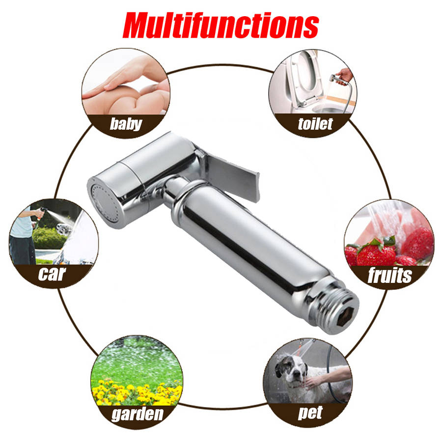 Specifications: Material: Copper Color: Silver Size: 5*13cm (1.9x5.1) Connection: G1/2 Hose length: 1.5m (59) Features: - Pressurized water, press to adjust the water. - The water is fierce and it is long enough. - Spout can be disassembled for easy cleaning. - A variety of uses, can be used to wash the butt, wash the toilet, wash the car, wash the pet and so on. Package included: 1 x Bidet Sprayer 1 x 1.5m Hose 1 x Sprayer Holder
