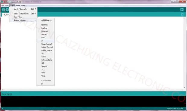 With the IR folder ( or whatever you named it) now in your libraries directory, we can import it into a new sketch.