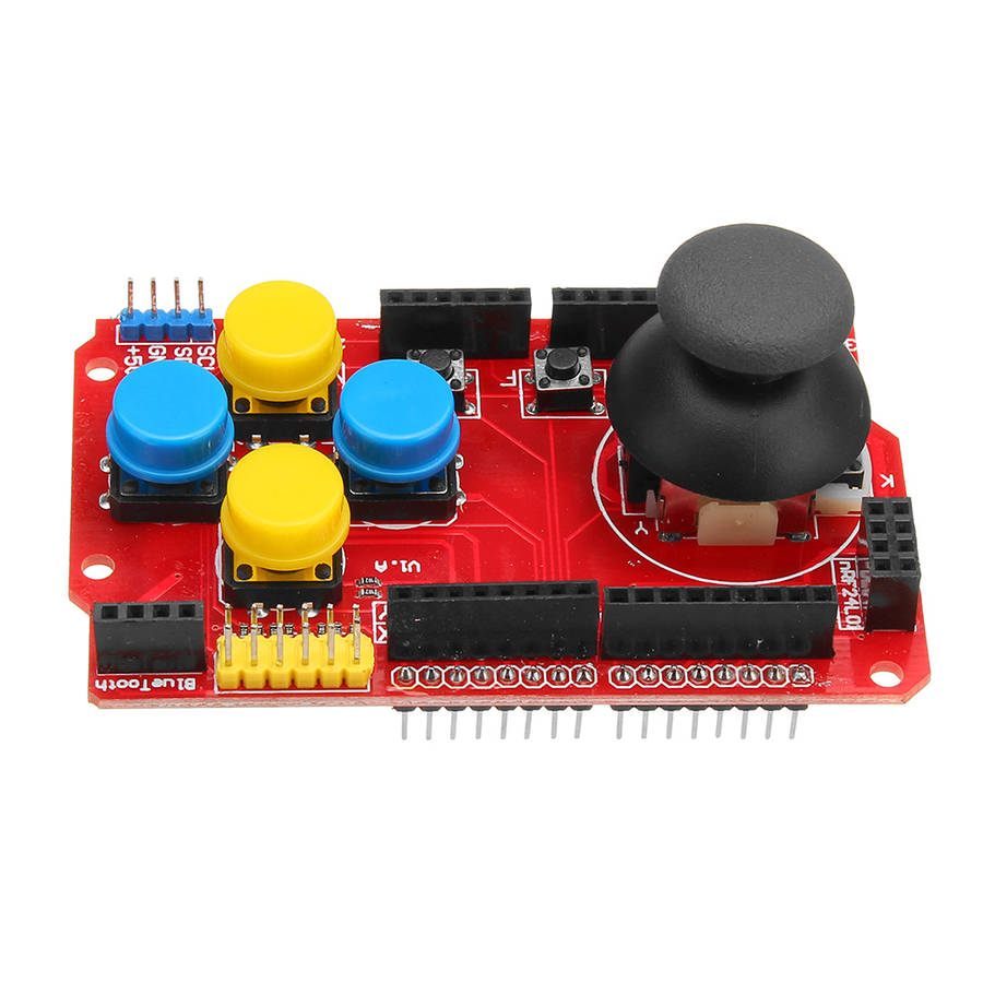 Features: - Add RF interface of nRF24L01 - Added Nokia 5110 LCD interface, which is very convenient for game development. - Add the interface of the bluetooth module to facilitate bluetooth wireless serial communication. - Add I2C communication interface to facilitate connection of I2C devices - At the same time, the JoyStick Shield has 1 PS2 with button cross rocker, 4 round buttons and 2 small buttons. An input extension for the joystick and buttons is provided for the . - The onboard switch can be switched between 3.3V and 5V. This module can be used on other 3.3V microcontroller platforms such as STM32. Package Included: 3 x JoyStick Shield Game Analog Keyboard