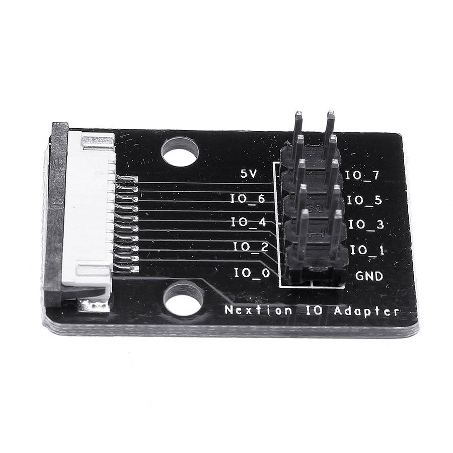 TheNextion IO Adapter is made specially to work with Nextion Enhanced HMI Display Series which covers standard 2.4, 2.8, 3.2, 3.5, 4.3, 5.0, 7.0. The small board pins out GPIOs ofNextion Enhanced display to 2.54 inch headers, which allow users to access the GPIOs more conveniently.
