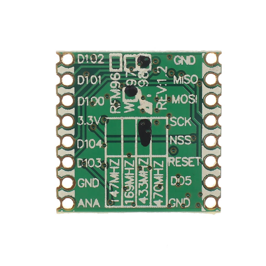 a LoRa TM remote communication module a Link budget up to 168dB a +20 dBm -100 mW stable RF transmit power and working voltage a +14dBm high efficiency PA a Programmable rate up to 300kbps a High sensitivity: minimum -148 dBm a Bulletproof front end: IIP3=-12.5dBm a Strong anti-interference a Low receiving current: 10.3mA, when the register is saved: 200nA a Highly integrated synthesizer with a resolution of 61 Hz a FSK, GFSK, MSK. GMSK, LoRa TM and OOK modulation modes a Built-in bit synchronization device, can realize clock recovey a Leading detection a 127dB dynamic range RSSI a Automatic RF detection and CAD, ultra-fastAFC a Data packet BUFFER up to 256BYTE, with CRC a Internal temperature sensor and low battery detection indication a Module size: 16*16mm