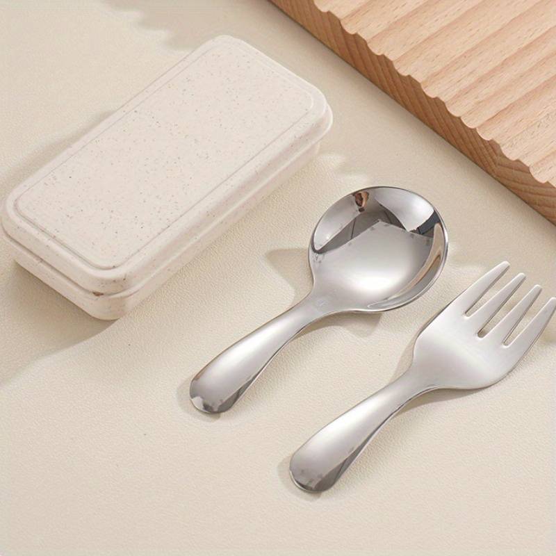3pcs Set Stainless Steel Short Handle Spoon and Fork, Portable Teaspoon for Milk Powder, Ice Cr Random Color Random style Material:Stainless Steel Item ID:EK522255