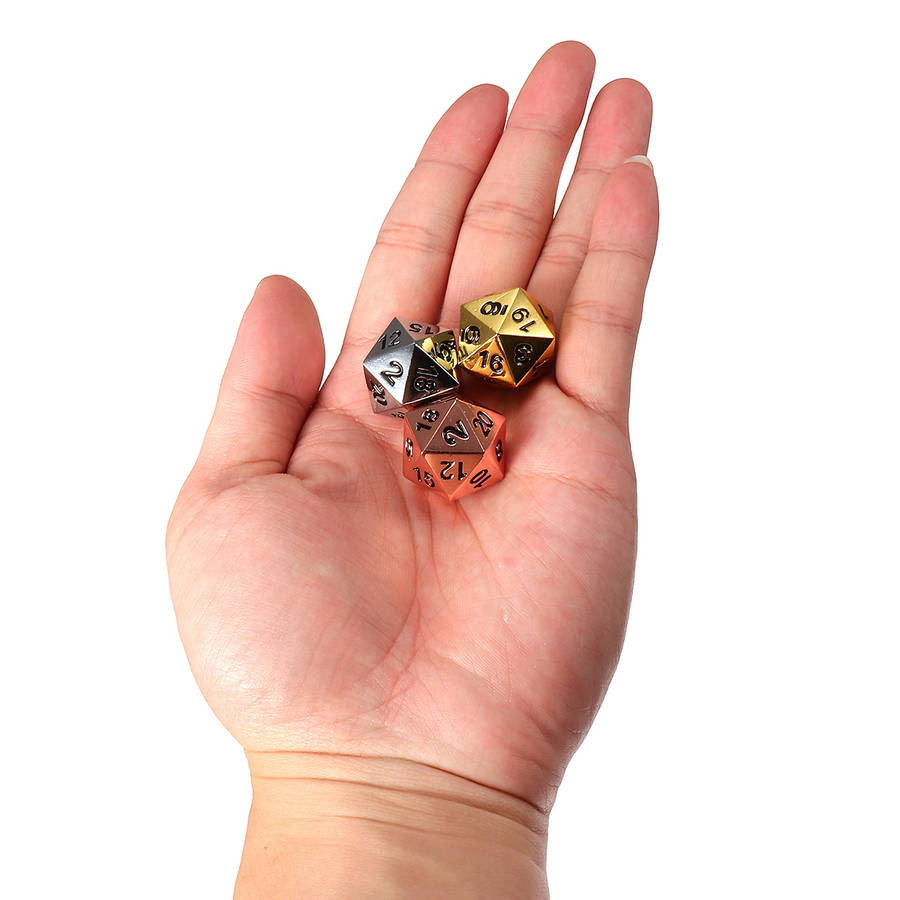 3pcs Solid Metal D20 Polyhedral Dice Set Bright Copper Chrome Silver Gold D&D