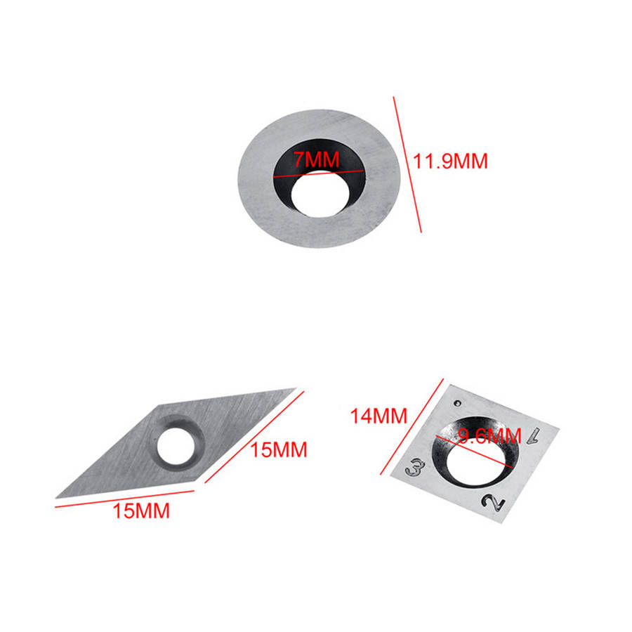 Description: 3PCS Tungsten carbide insert cutter set fit for wood turning working lathe tool DIY. Specification: Material: Solid tungsten carbide Hardness: 94.5HRA Square: 14*9.6mm Round: 11.9*7mm Diamond: 15*15mm with sharp point Features: High performance reversible and indexable replacement carbide inserts have 4 cutting edges. Designed for numerous spiral/helical planer cutter head system, wood lathe tools. Easy to replace your jointers and planers. High strength and hardness. Easy to use, not easy to rust. Durable in use. Apply for general purpose wood, chipboard, plywood, MDF/HDF. Package Included: 3 x Carbide Inserts More Details: