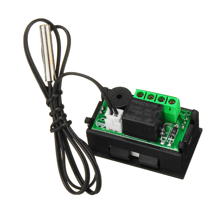 Specifications: The input voltage:DC12V Power consumption: Static current less than or equal to 35 mA;attract current less than or equal to 65 mA. Power supply: 12v 200 mA Temperature measurement range: -50a-110a Accuracy: 0.1a Return difference accuracy:0.1a Refresh rate:0.5s High temperature protection: 0-110a Measurement input:NTC (10K 0.5%) waterproof type sensor Output:1 way 10 A relay Environmental requirements: -10a to 60a; Humidity : 20%-85% Size: 48mm x 29mm x 32mm Hole size: 46 x 26.5mm Package Includes: 3 x Temperature Controller 3 x Temperature Sensor 3 x Manual