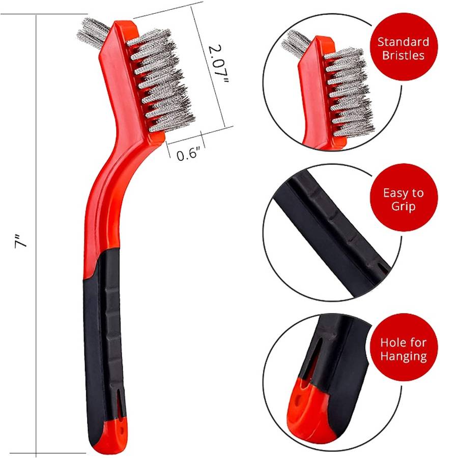 - [Portable]: 7-inch long, they are easy to put in your toolbox or handbag. So, whether you are going, wire brush set can go with you.